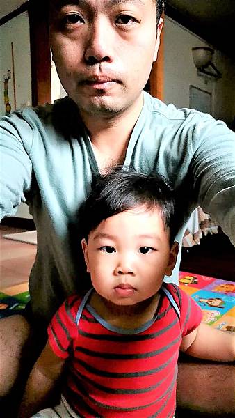隔天早上父子兩先睡醒,龐爸就抓龐來拍照、補光、去背(大約2Hs)