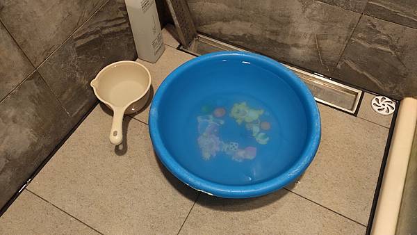 「媽咪,妳沖頭髮和沖澡時,身體要靠近一點,這樣水才會流進盆子裡哦!」