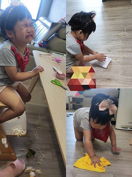 「雖然剛才妳不小心打翻麵了,但是妳有把它清理乾淨,看見妳是能為自己的不小心負責任的,我很欣賞妳!」