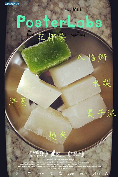 EX:芭樂+水打成果汁就直接冷凍,蒸熱後會乳水分離,變的有點胎溝